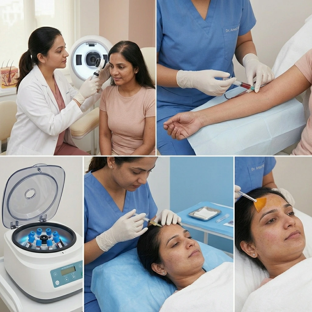 Doctor assesses your scalp or skin, reviews medical history, and confirms your suitability for PRP therapy.